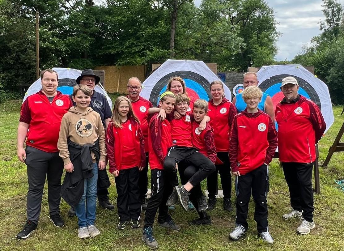18 Bogensportler*innen aus Dettingen und Zainingen trafen sich bei angenehmen Temperaturen am Sonntag, 09. Juni zu den Kreismeisterschaften „Bogen im Freien“ auf dem Bogenplatz des SV Dettingen. Hierbei stellte alleine der SV Dettingen in den unterschiedlichen Altersklassen 14 Teilnehmer. Nach der Begrüßung durch Kreissportleiter Hans-Martin Kärcher übernahm Kampfrichter Gero Grass die Einweisung in die Wettkampfregularien, sowie die Kontrolle der Sportgeräte. Nach dem „Einschießen“ begannen zunächst die Junioren und Erwachsenen mit dem Wettkampf. Sie mussten auf eine Auflage in 50 m Entfernung 72 Pfeile abgeben. In der Juniorenklasse wurde Michelle Pleger mit 439 Ringen Kreismeisterin. Kreismeister in der Blankbogen Masterklasse wurde mit 510 Ringen Ralf Pleger. Seine Teamkollegen Peter Essig und Hagen Foltz belegten die Plätze zwei und drei. Michelle und Ralf Pleger qualifizierten sich mit ihren Leistungen für die anschließende Landesmeister-schaft. Rebecca Reusch startete zum ersten Mal in der Blankbogen Damenklasse. Sie wurde mit 396 Ringen Kreismeisterin. Frederick Müller war in der Langbogen-Einsteigerklasse alleiniger Starter und lieferte gute 350 Ringe ab.